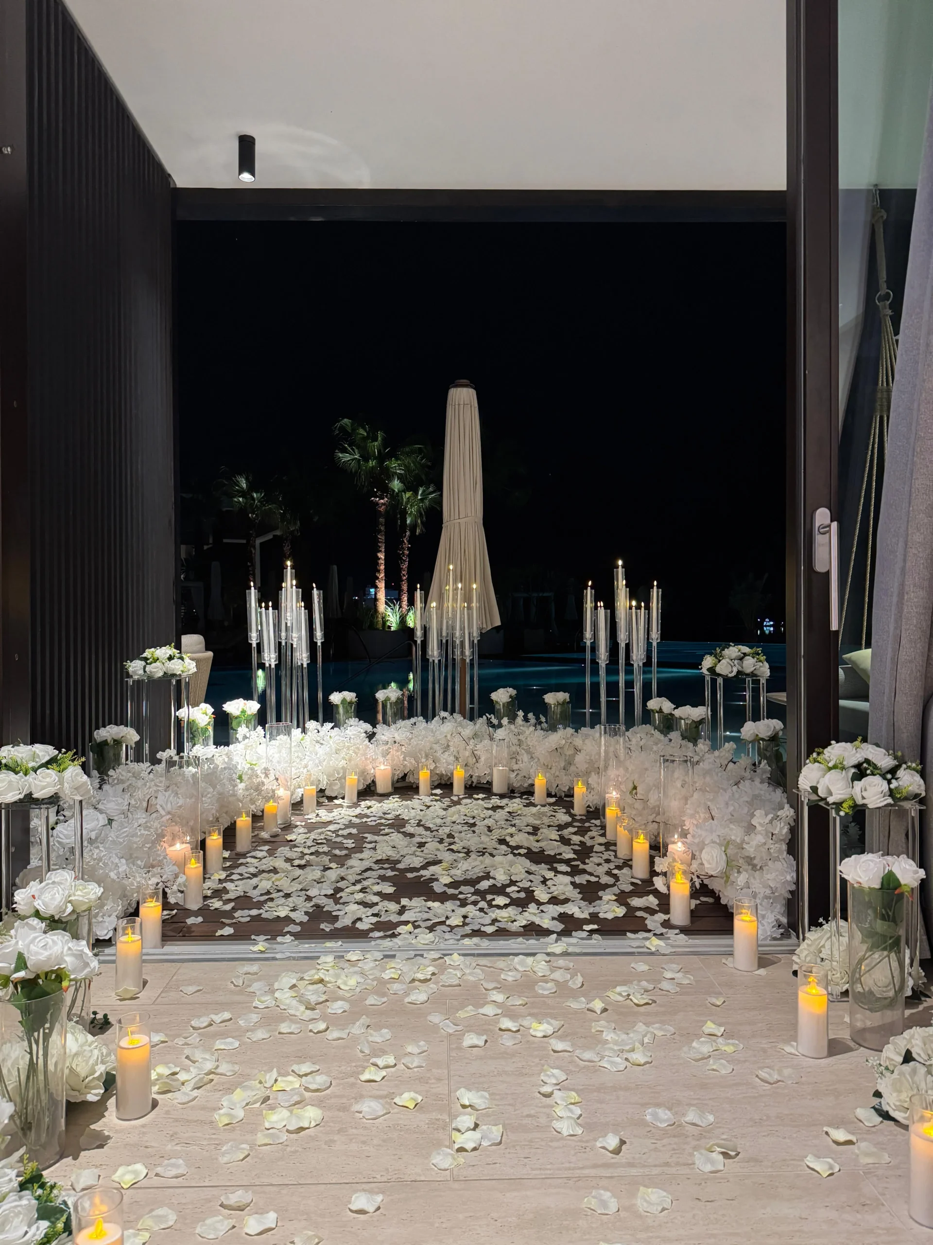 בנוסף לתאורה הקסומה ולתפאורה המעוצבת, אנו משלבים גם פרחים, בלונים, נרות ומוזיקה מרגשת – כך שהאווירה כולה תתחבר לחוויה רומנטית מושלמת.